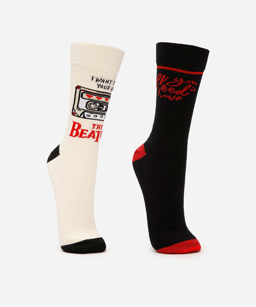 kit de 2 meias unissex cano alto the beatles colorida