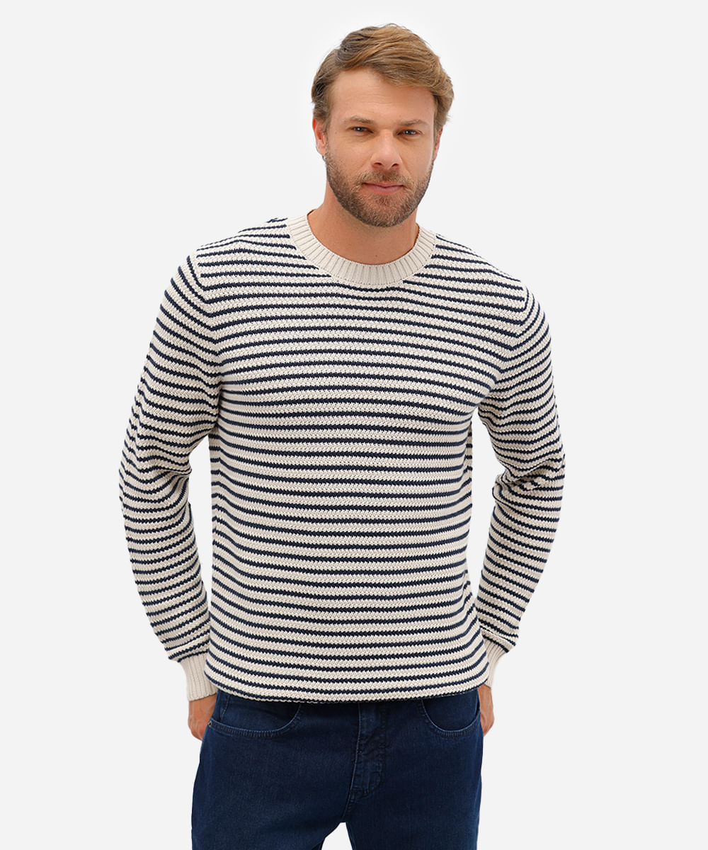 suéter masculino de tricot listrado off white