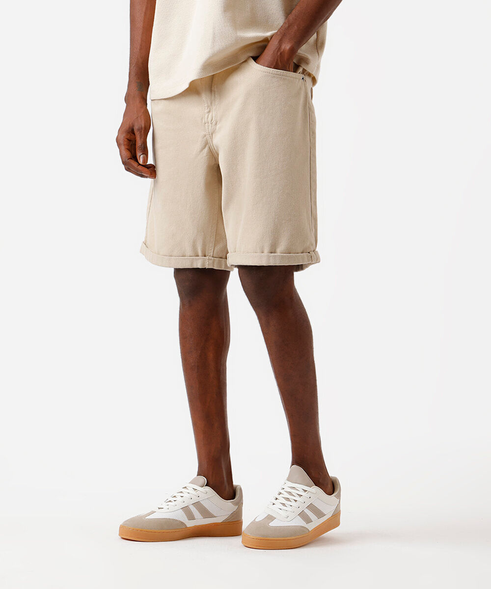 bermuda reta de sarja com barra dobrada bege