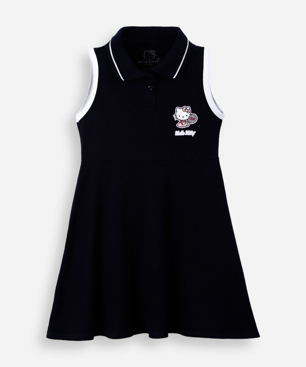 vestido infantil polo de algodão hello kitty azul