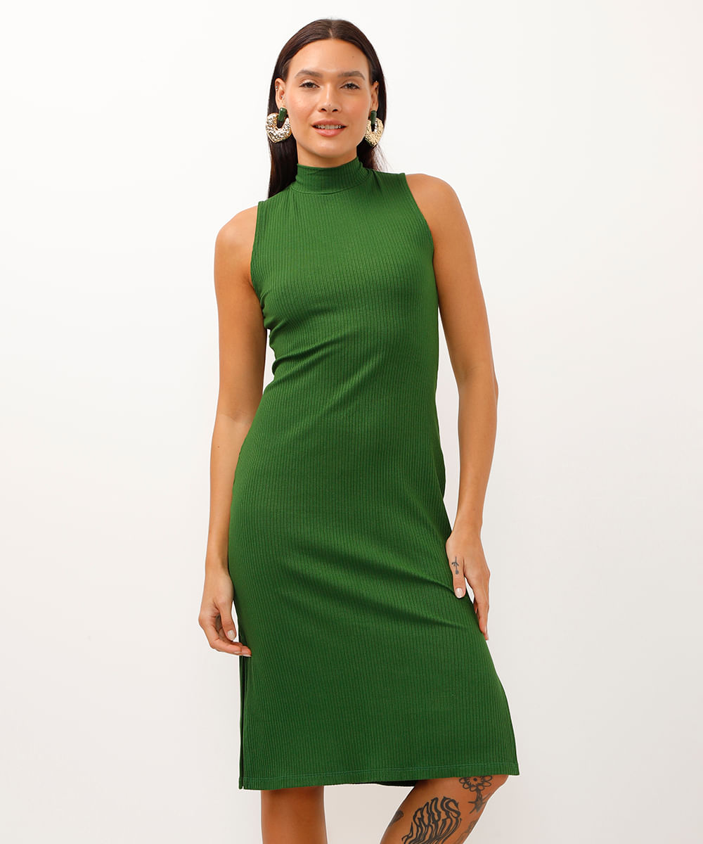 vestido midi de viscose canelado verde