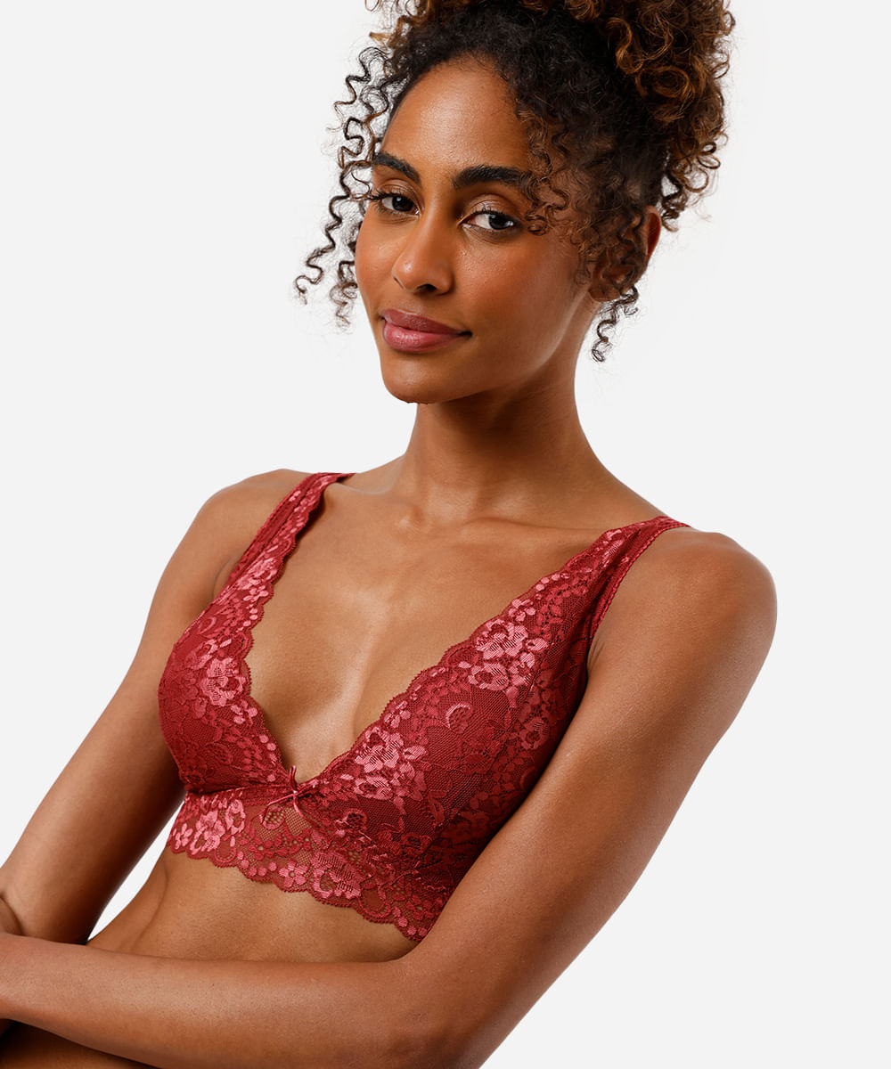 sutiã triangulo de renda floral vinho