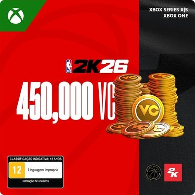 Este pacote de moedas virtuais contém 450.000 VC ... Maispara serem usadas no NBA 2K26. ''Você deve aceitar o Contrato de serviços da Microsoft (microsoft.com/msa) e os https://www.take2games.com/privacy/. Precisa de download(s) (armazenamento significativo, conexão banda larga com a internet, tarifas de ISP se aplicam). Pode precisar de hardware e assinaturas adicionais. Recursos, serviços e suporte não estão disponíveis em todas as regiões (xbox.com/regions) e podem variar, mudar ou serem descontinuados ao longo do tempo. Pode conter compras no jogo. Conta da Microsoft necessária. Exige NBA 2K26 (vendido separadamente). Exceto conforme exigido por lei, os códigos não são reembolsáveis. Os modos multijogador/cooperativono console precisam do Game Pass Ultimate ou Core (assinaturas vendidas separadamente). ? AVISO: Algumas pessoas podem sofrer convulsões quando expostas a luzes ou padrões piscando em videogames. (xbox.com/healthandsafety).'' O código digital será impresso em seu recibo. Resgate em microsoft.com/redeem Menos
