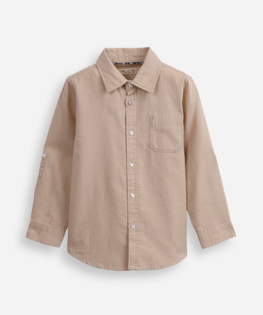 camisa de algodão infantil com martingale bege