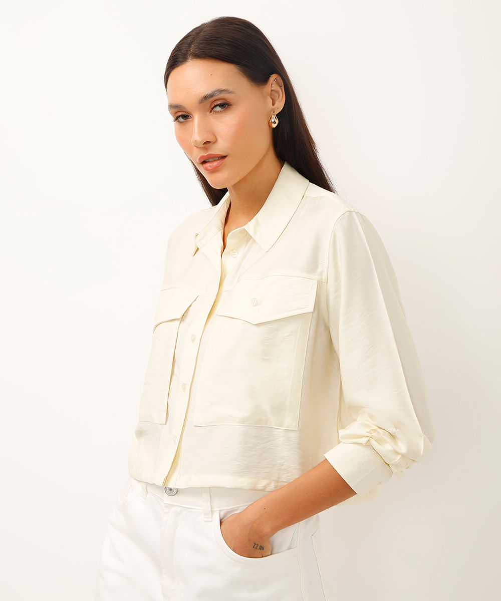 camisa de viscose manga longa com bolsos off white