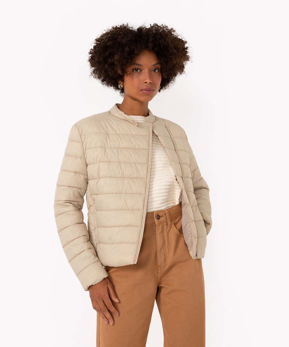 jaqueta puffer perfecto com zíper bege