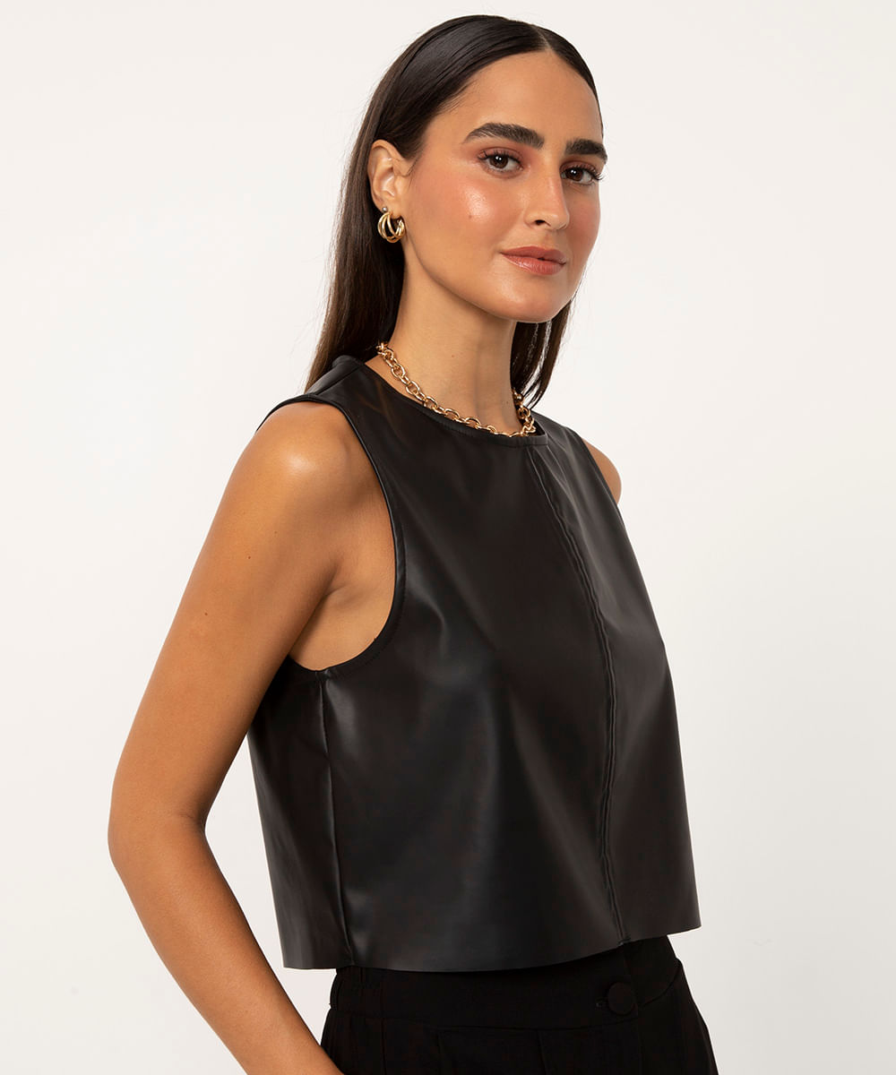 regata cropped de poliuretano preta