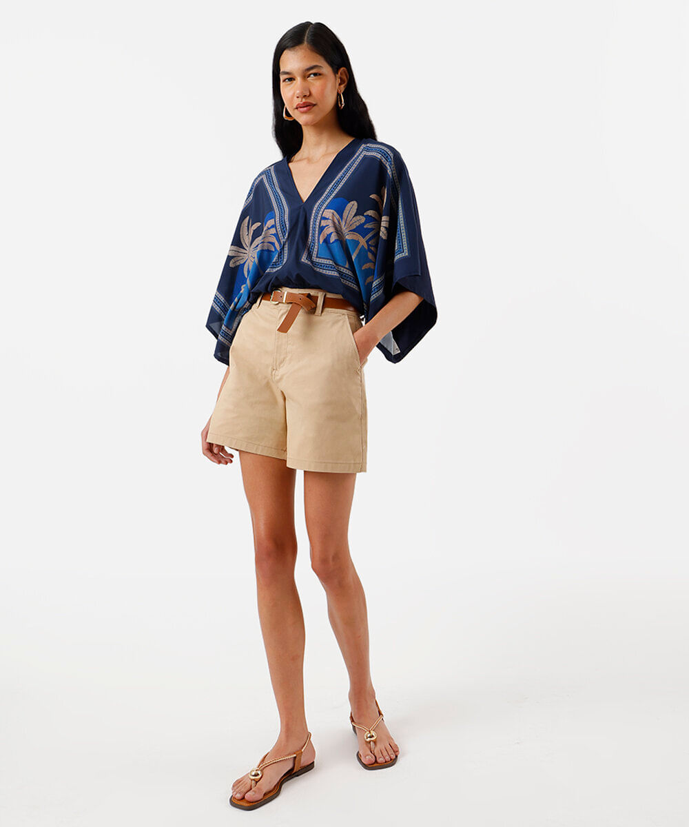 bermuda reta feminina de sarja com cinto bege