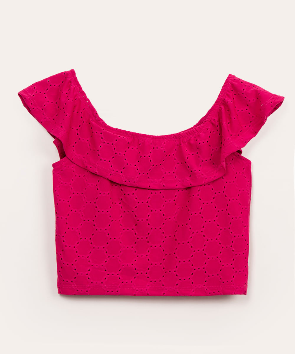blusa infantil de laise ciganinha com babado pink