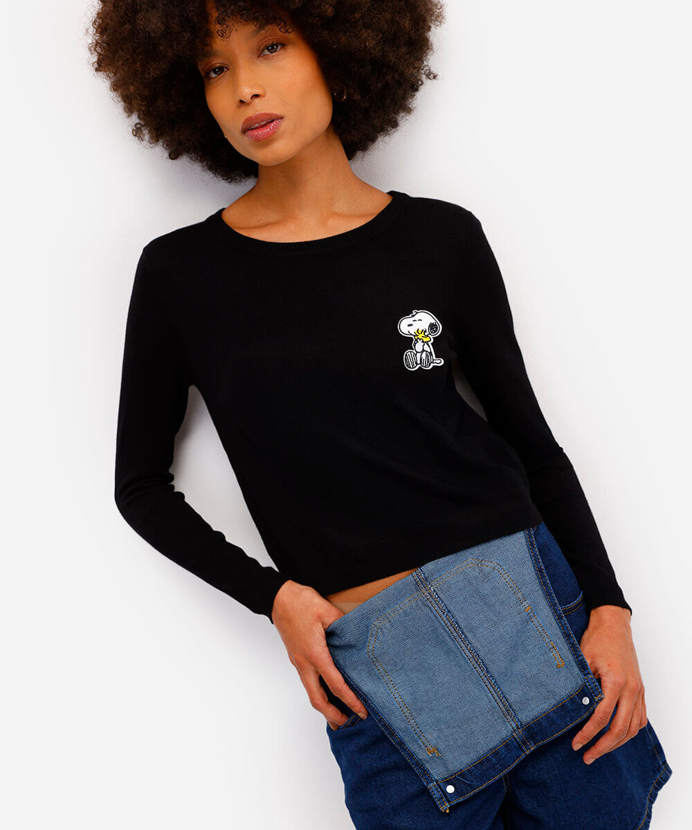 suéter feminino de tricot snoopy preto