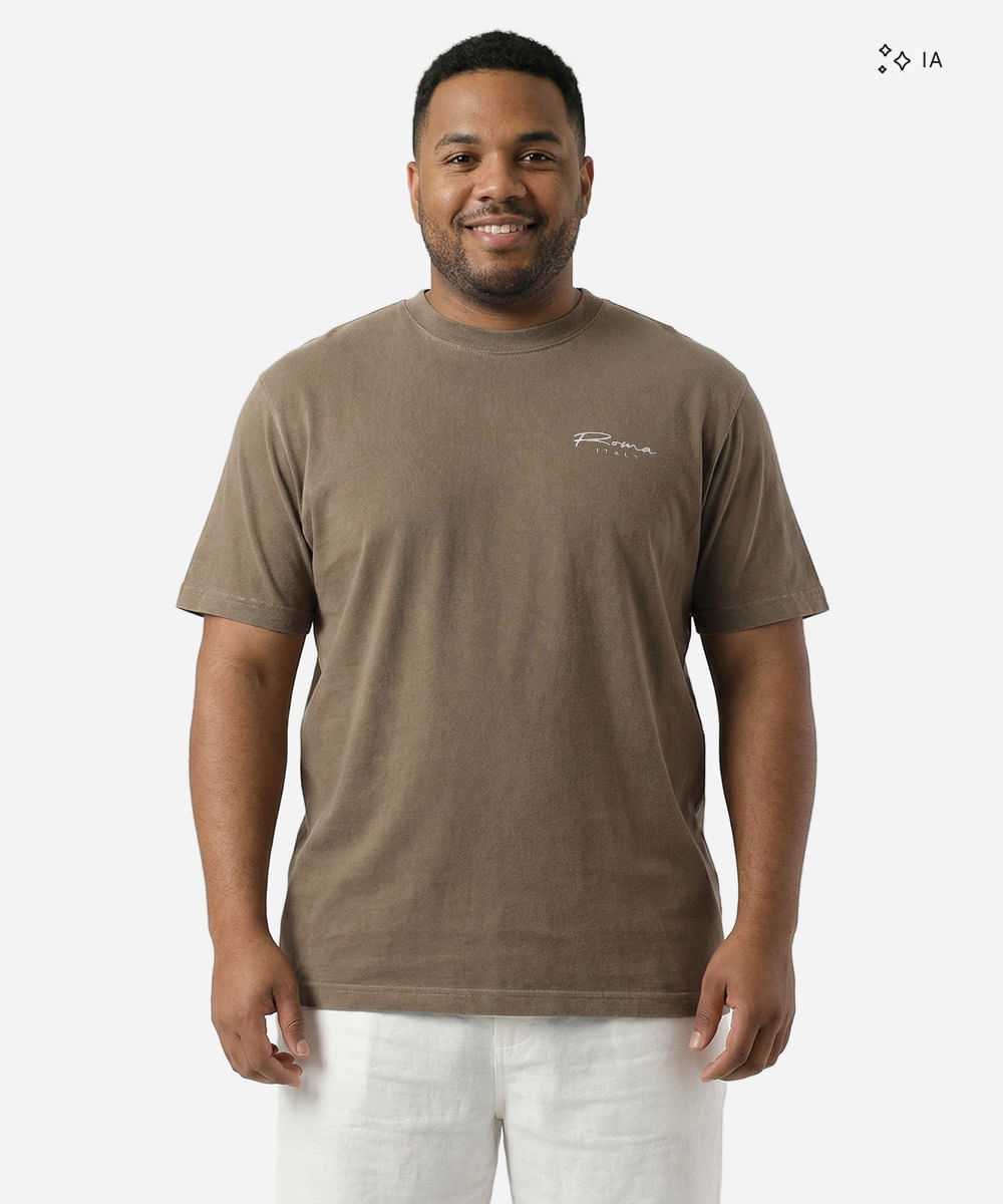 camiseta masculina de algodão estampada plus size bege