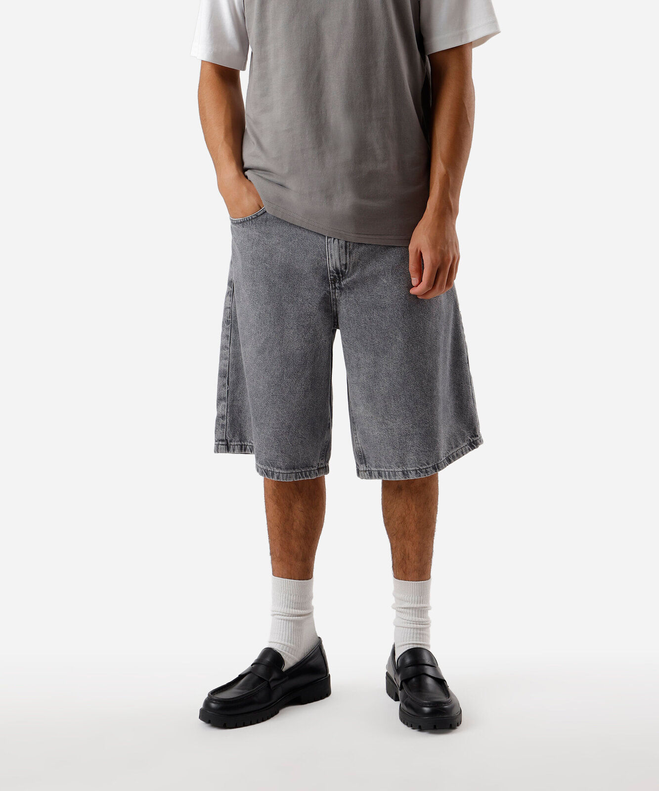 bermuda baggy masculina jeans cinza