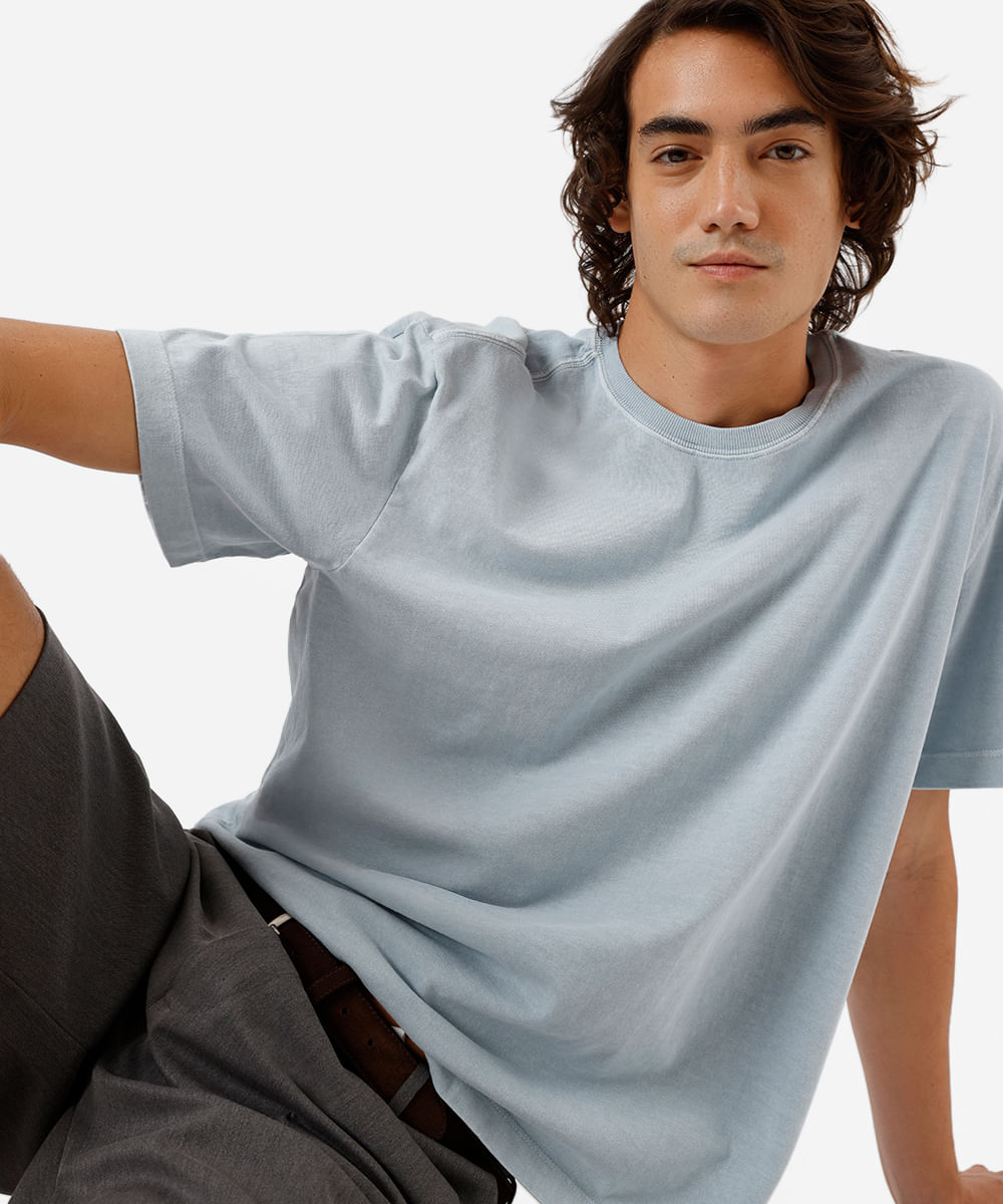 camiseta box masculina de algodão estonada azul