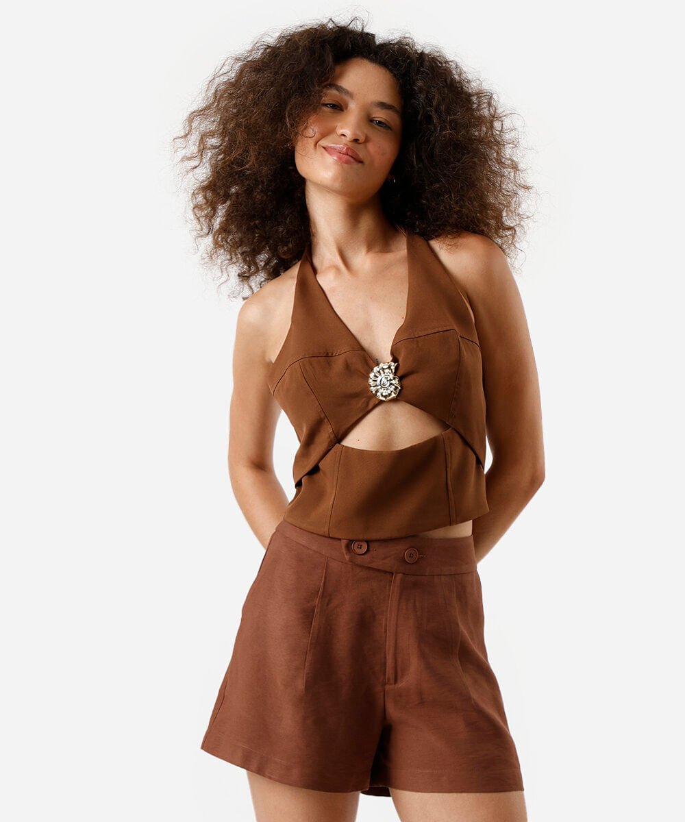 cropped frente única feminino com recorte marrom