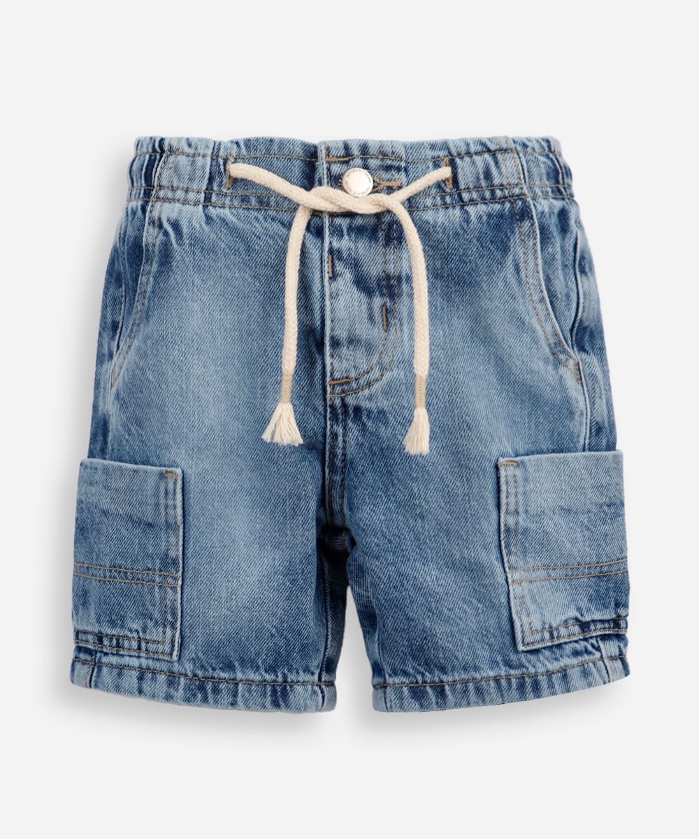 bermuda reta infantil jeans com bolsos azul