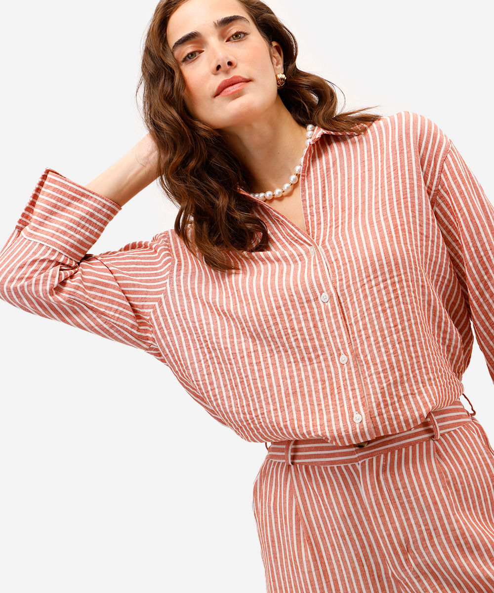 camisa feminina com linho listrada laranja