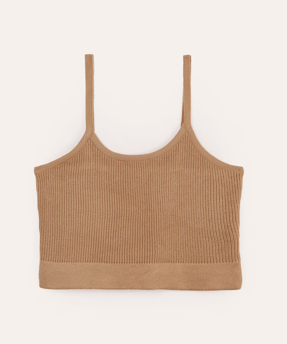 cropped de tricot juvenil alça fina bege
