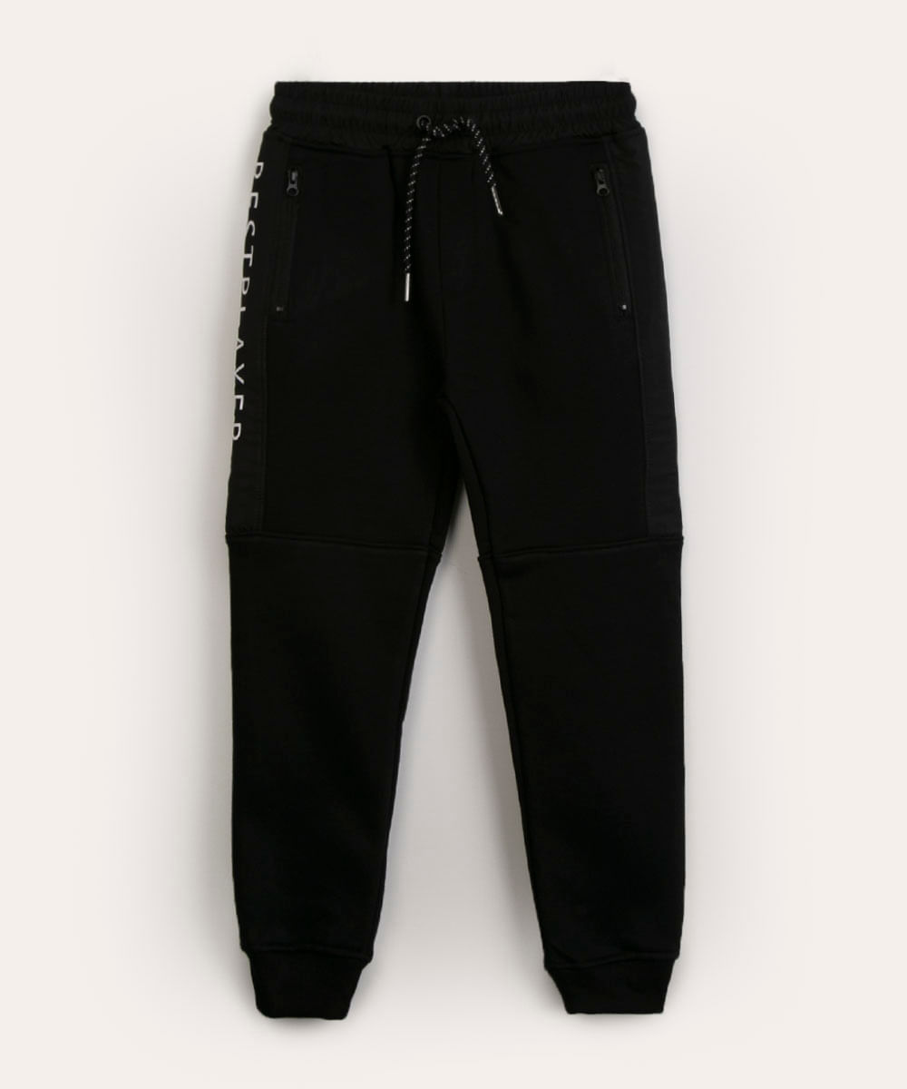 calça de moletom infantil com recortes preta