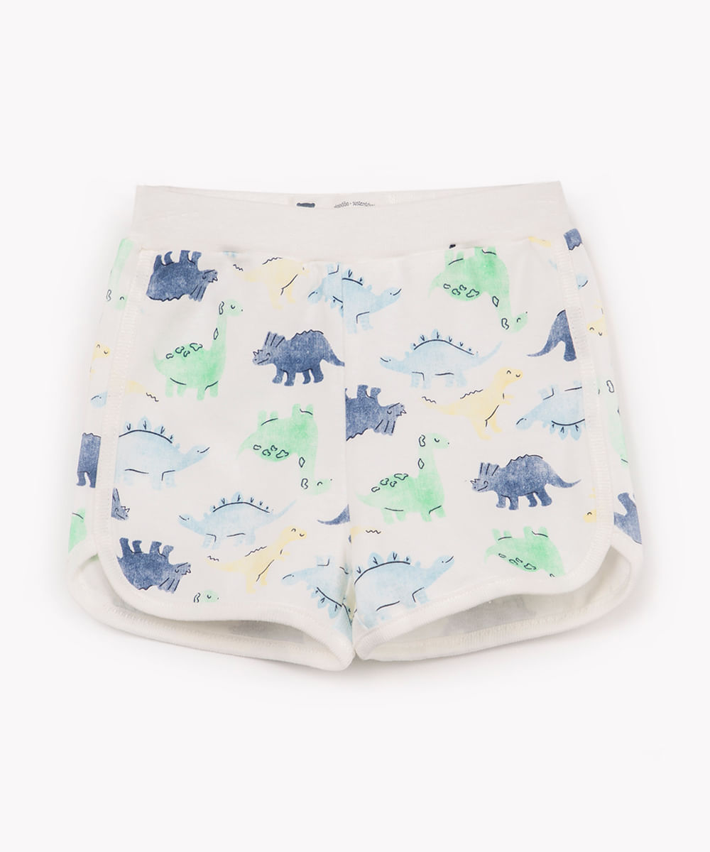 short infantil de algodão fun dino off white