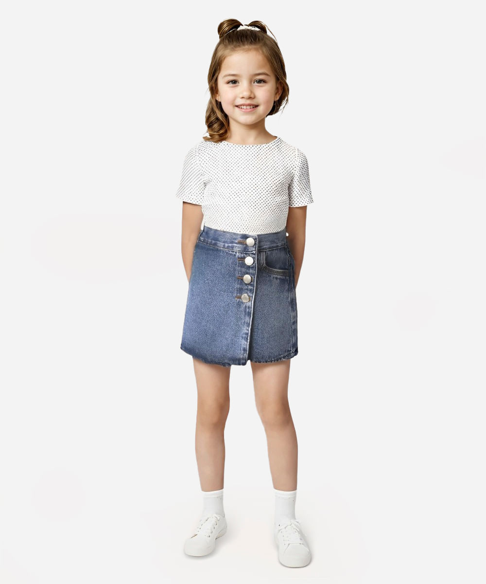 short saia infantil jeans transpassado azul