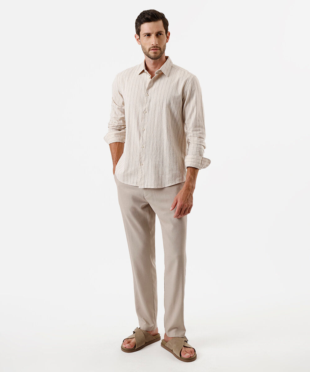 calça slim chino masculina com linho bege