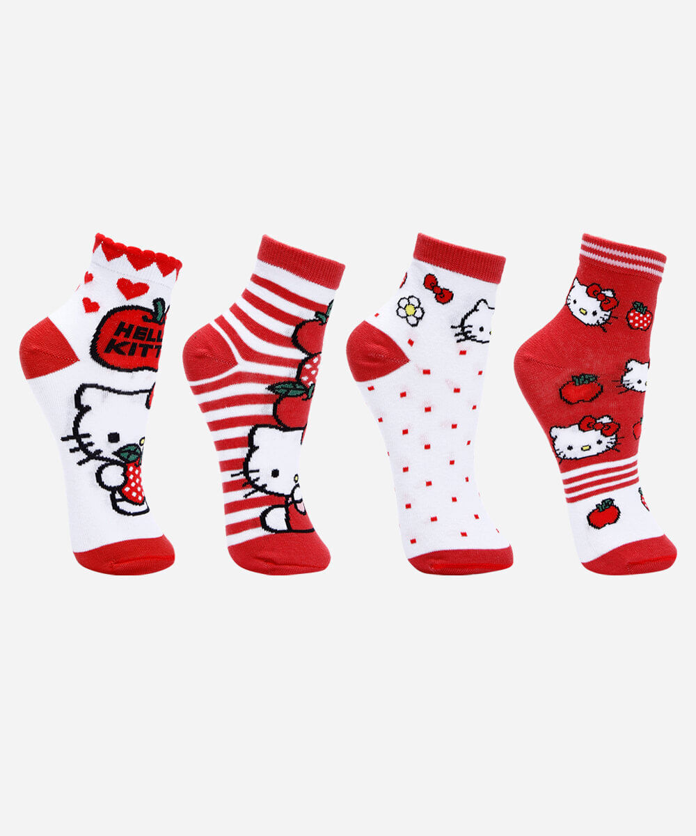 kit de 4 meias cano médio hello kitty colorido