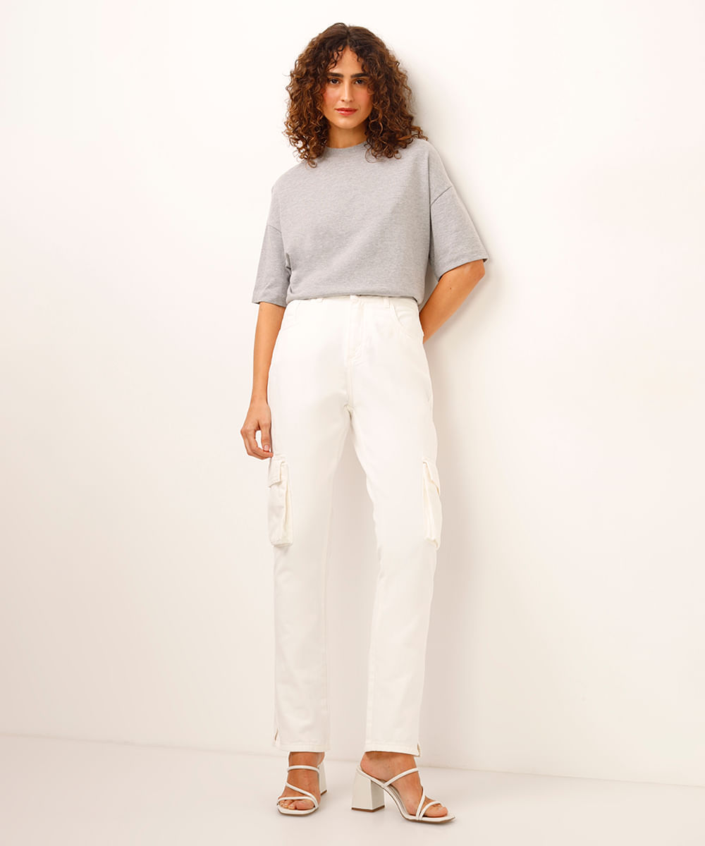 calça cargo de sarja cós elástico sawary off white
