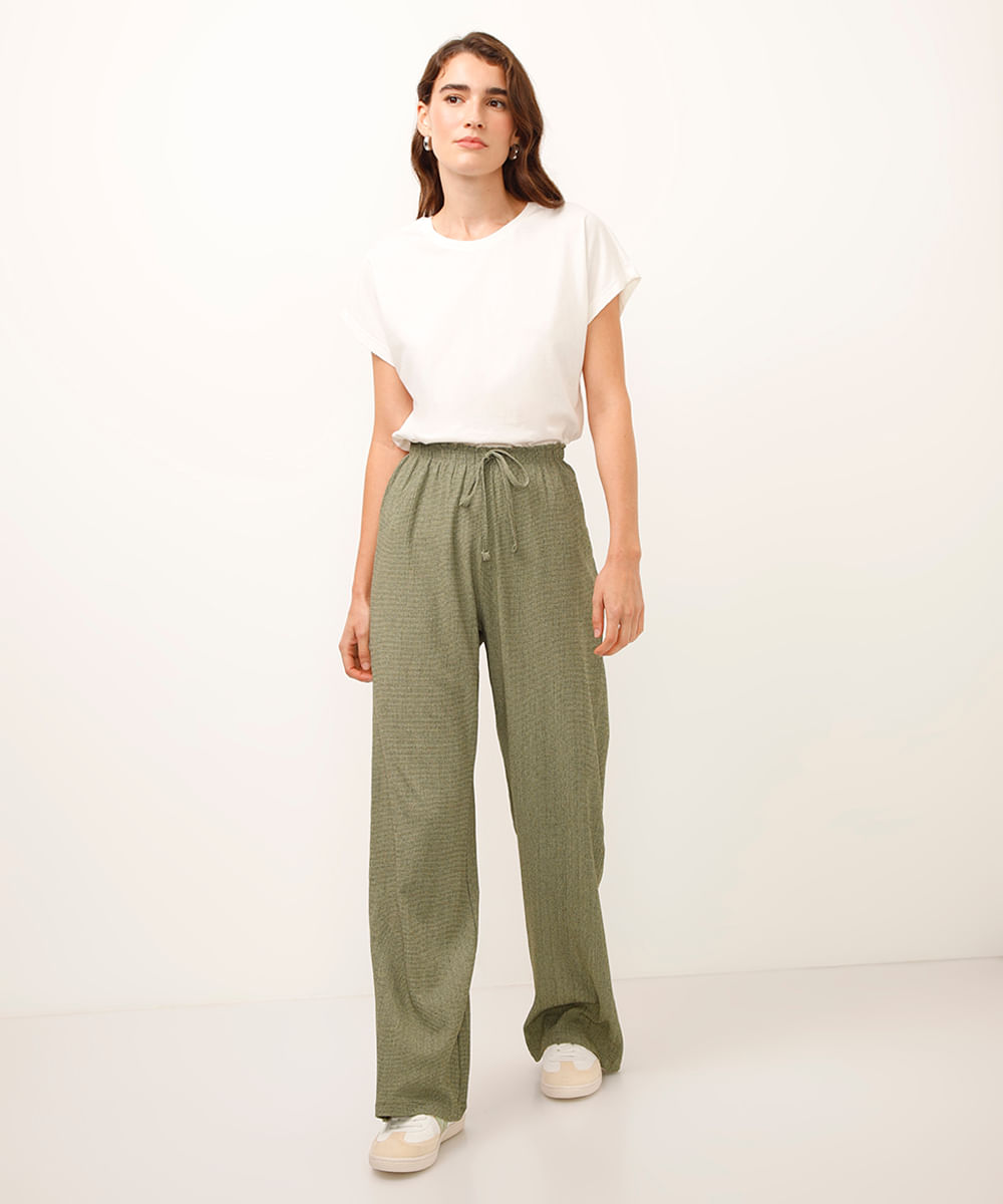 calça pantalona texturizada verde