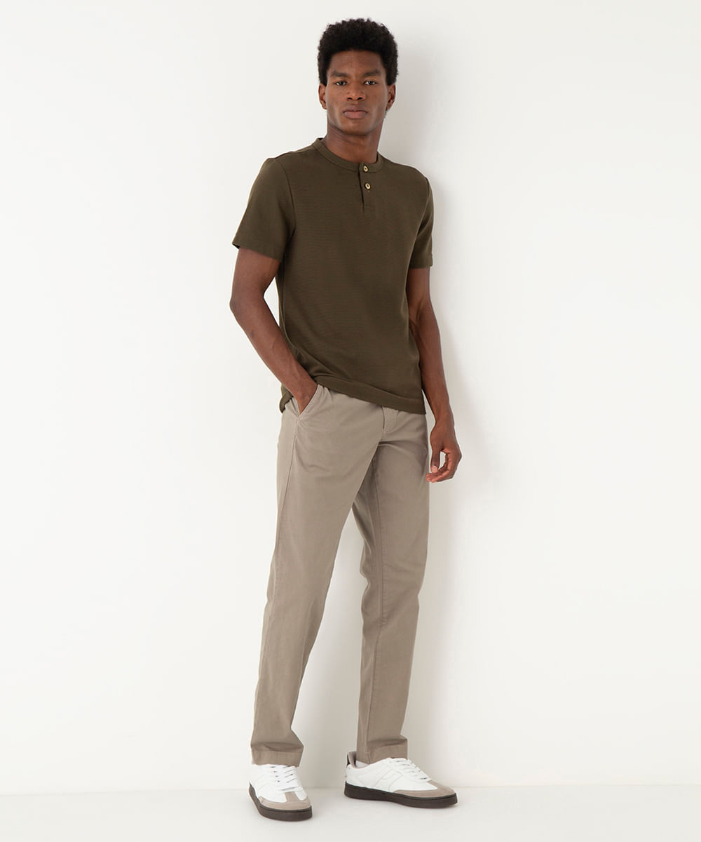 calça de sarja slim com bolsos cinza