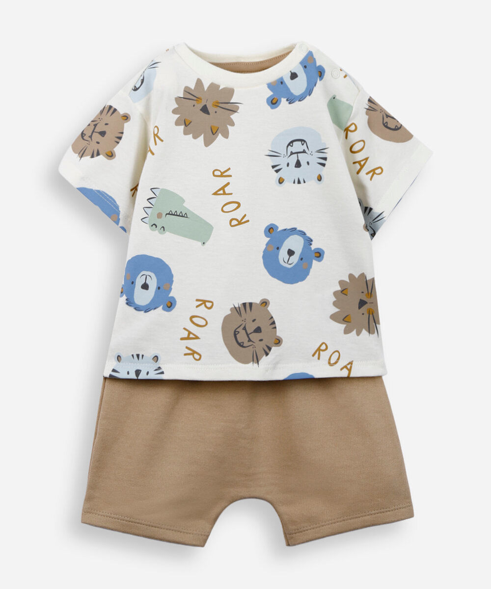 conjunto infantil de algodão estampado off white