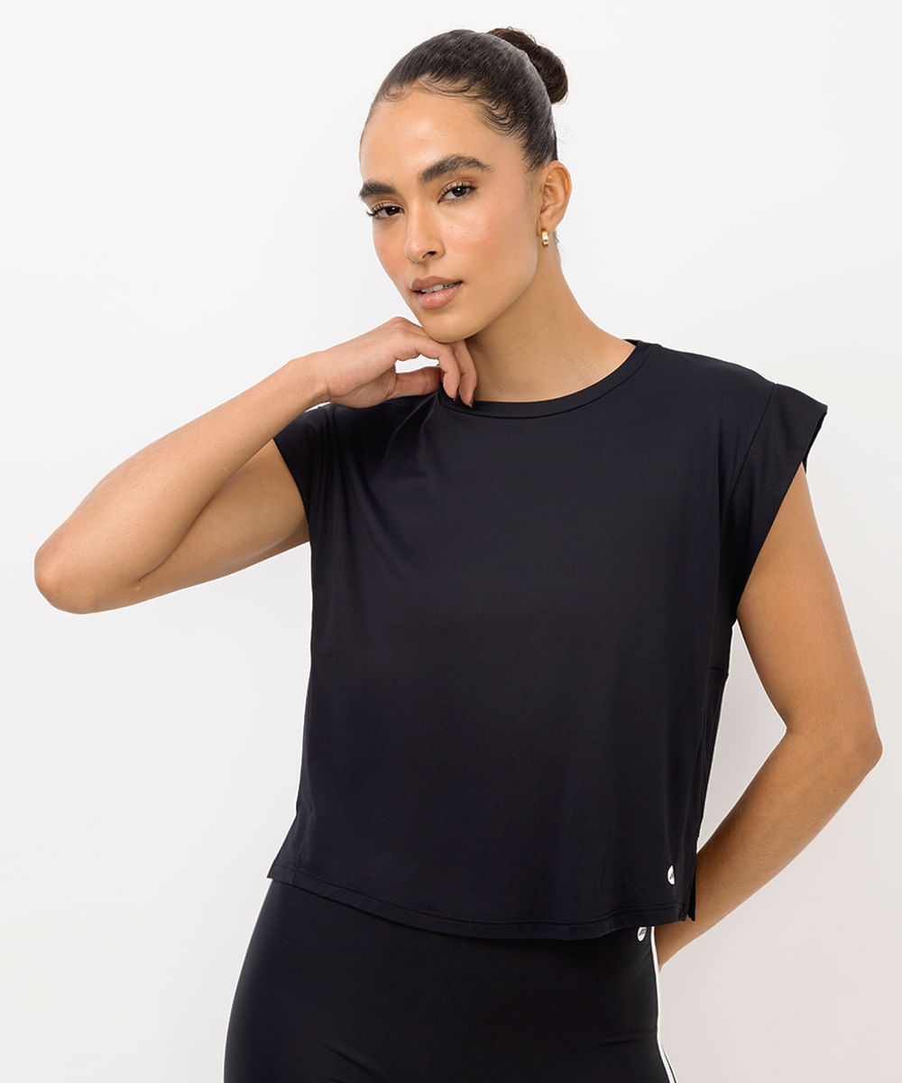 camiseta feminina muscle esportiva ace preta