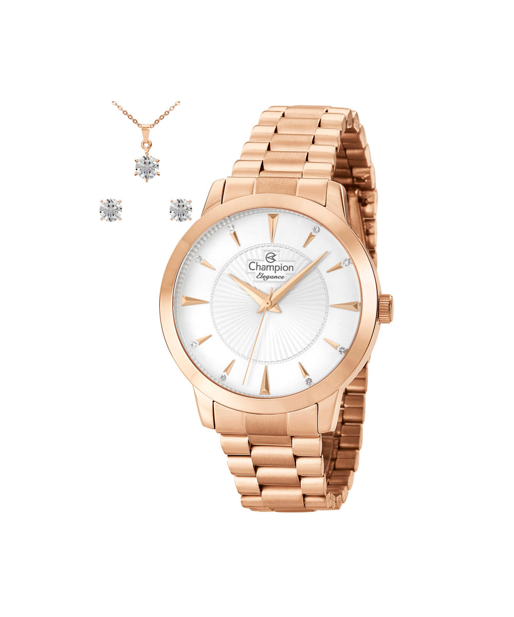 kit relógio feminino champion analógico cn25092e rosa