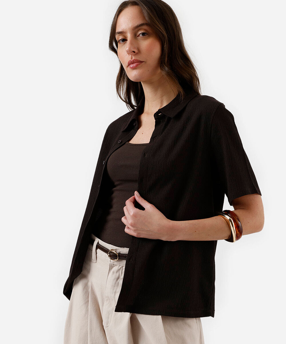 camisa básica feminina texturizada marrom