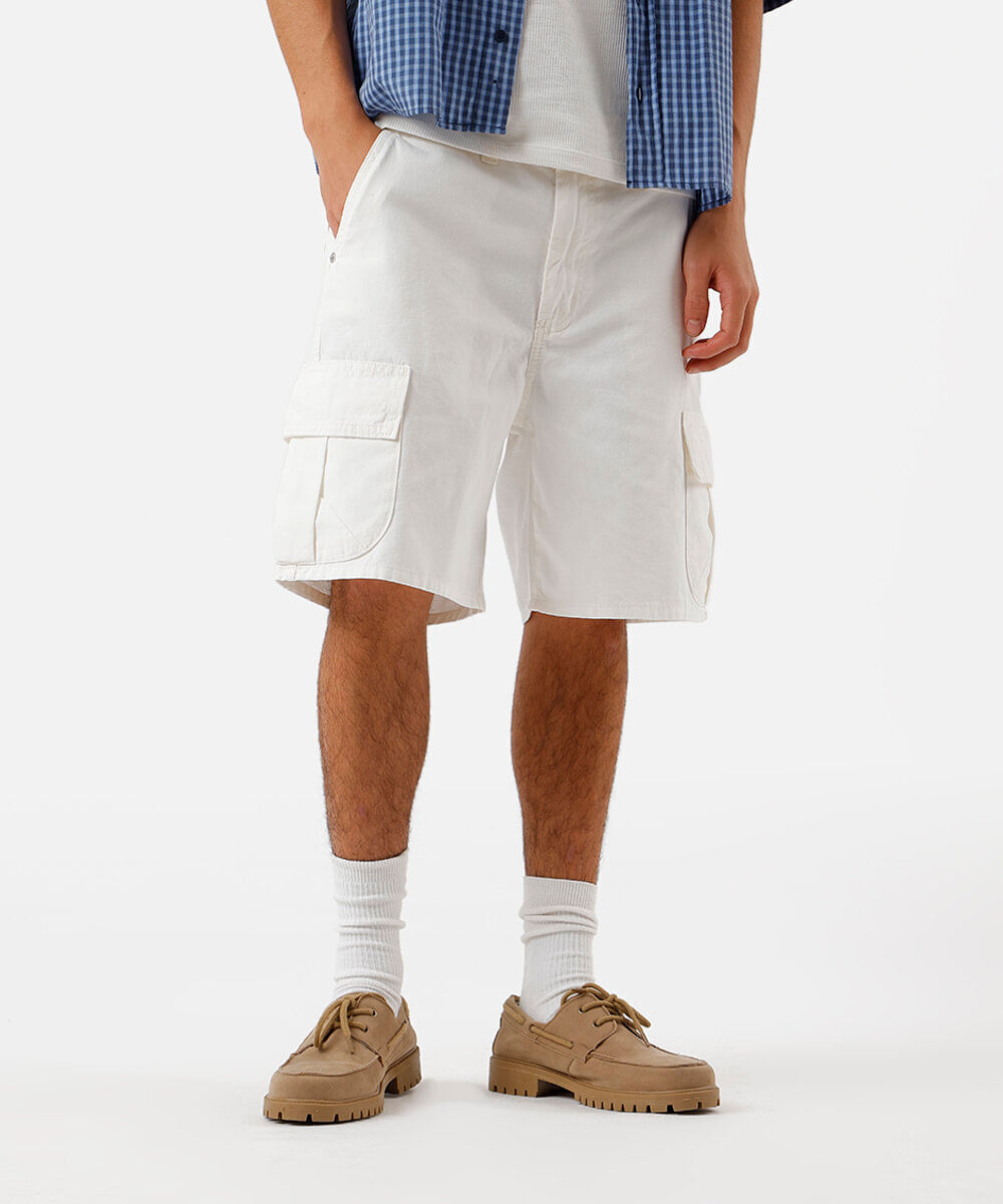 bermuda cargo masculina de sarja off white