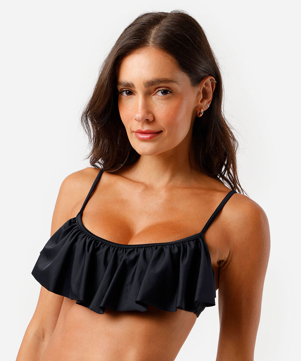 biquíni top feminino com babado preto