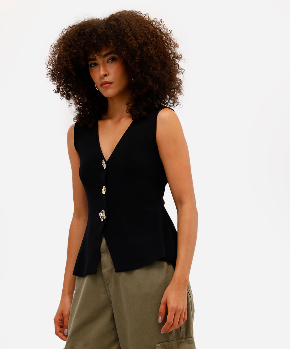 colete peplum feminino de tricot preto