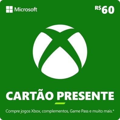 Compre jogos, complementos, Game Pass e muito mais... Mais com o cartão-presente XboxInstruções de resgate:1. Acesse microsoft.com/redeem. 2. Revele cuidadosamente o código e o insira. 3. Comece a comprar. TERMOS E CONDIçõES Funciona com Xbox One, Xbox Series X|S e PCs e tablets com Windows 10/11. Válido para compras qualificadas (aplicam-se restrições) em lojas online selecionadas do Xbox e da Microsoft. a disponibilidade de produtos/recursos varia de acordo com a região. é necessária uma conta Microsoft. Aplicam-se termos e condições e restrições do país (microsoft.com/cardterms). A duração da bateria varia significativamente com acessórios adicionais, uso e outros fatores. Testes conduzidos pela Microsoft usando unidades de pré-produção. O Xbox Cloud Gaming (Beta) requer uma assinatura do Xbox Game Pass Ultimate e um controle compatível ( os dois são vendidos separadamente). Selecione regiões (xbox.com/regions) e dispositivos (xbox.com/cloud-devices). aplicam-se limites de streaming, a disponibilidade do servidor e os tempos de espera podem variar. Exige conexão de alta velocidade com a Internet (aplicam-se taxas de ISP). Consulte o catálogo de jogos na nuvem (xbox.com/play).IMPORTANTE: Por se tratar de um produto DIGITAL, em razão de suas características técnicas, após RECEBIMENTO da Chave/licença, não é possível o cancelamento e/ou desistência da compra. Menos