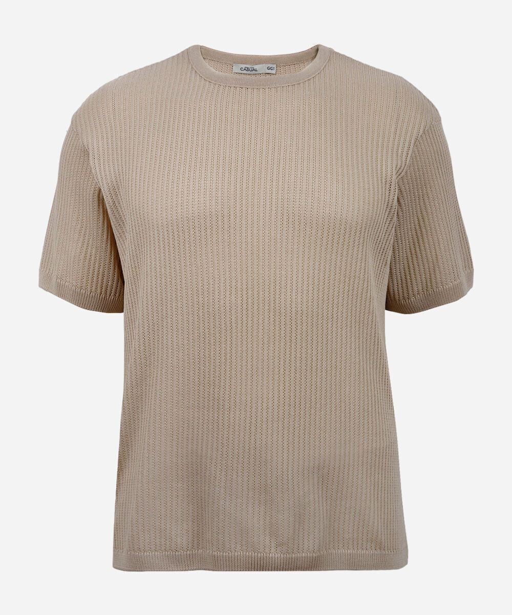 camiseta masculina de tricot texturizada plus size bege