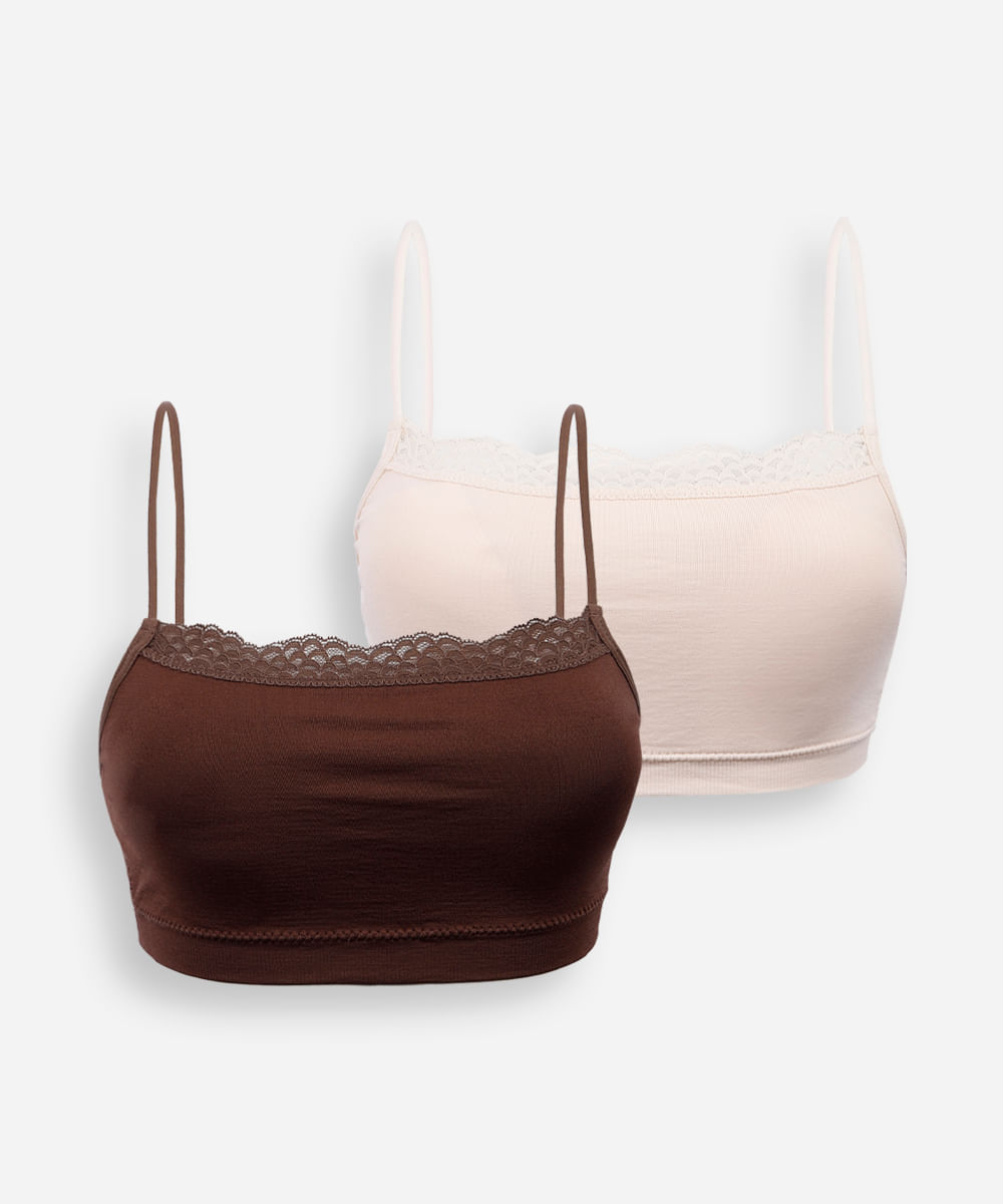 kit de 2 sutiãs faixa com renda colorido